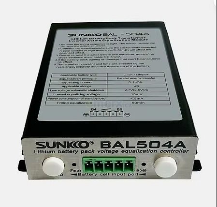 SUNKKO BAL-504A 5A je špičkový bateriový balancér pro litiové články Li-Ion nebo LiFePO4 s kapacitou nad 20Ah. Je osazen toroidním transformátorem a polovodiči MOS.