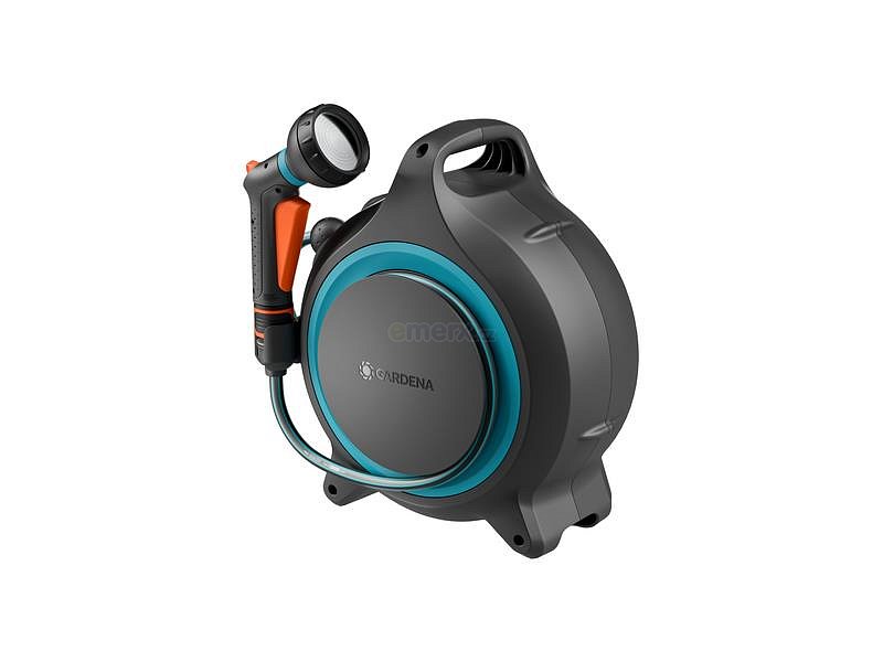 Součást balení: 1x přenosný box na hadici MoveMatic s 12,5 m hadicí (8,5 mm), 1x postřikovač Classic, 1x šroubení na kohoutek s adaptérem, 1x držák.