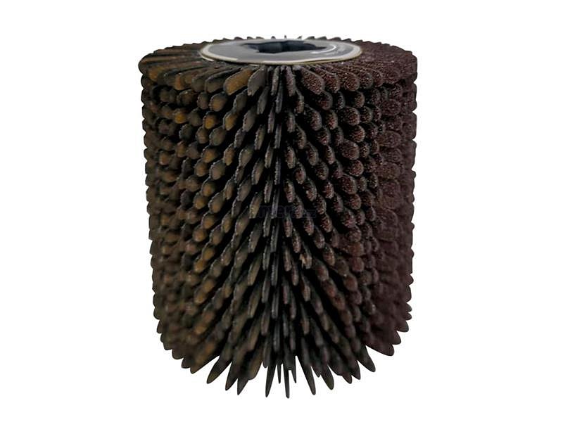 Lamelová konstrukce ze smirkového brusiva: vícevrstvé brusné lamely zajišťují rovnoměrný úběr materiálu a dlouhou životnost nástroje. Konstrukce umožňuje postupné opotřebení bez ztráty účinnosti.