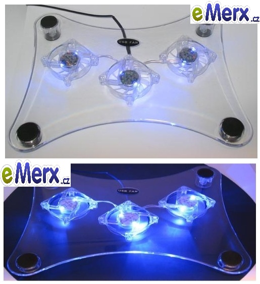 Ochrana počítače před přehřátím. Moderní vzhled, nízká spotřeba, zapojení do USB. Jemné modré podsvícení.