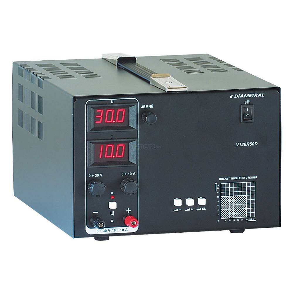 Laboratorní zdroj je vybaven jedním regulovatelným zdrojem s plynulou regulací napětí v rozsahu 0 ÷ 30 V s omezením výstupního proudu od 0,1 ÷ 10 A.