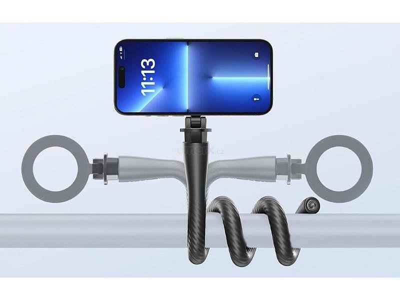 Díky flexibilnímu rameni lze držák tvarovat dle libosti, což vám umožní umístit telefon téměř do jakékoli polohy. Omotáte si ho kolem větve, potrubí nebo jiného předmětu a budete si užívat neomezené kreativní možnosti při pořizování fotografií a videí.