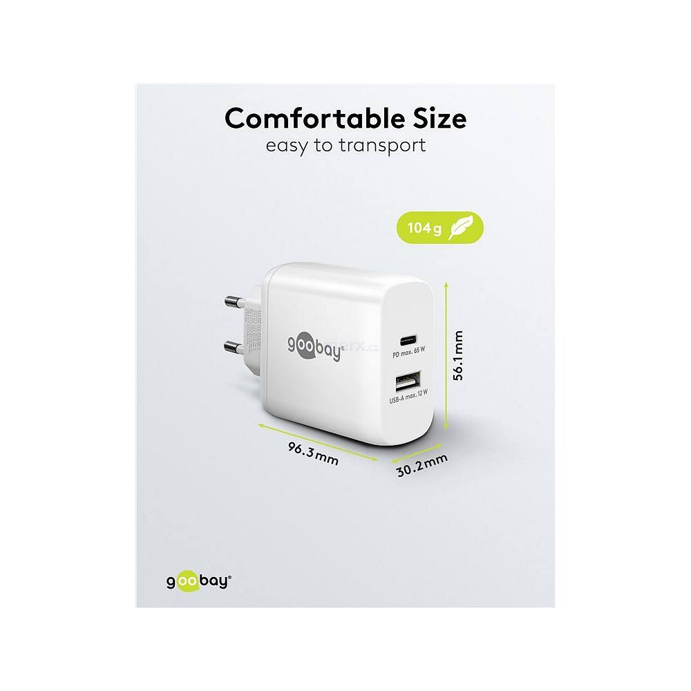 Kompaktní a lehký napájecí zdroj je dokonalým společníkem pro váš mobilní život: Díky maximálnímu výkonu při minimální velikosti nabíjí rychle a spolehlivě i notebooky výkonem až 65 W.