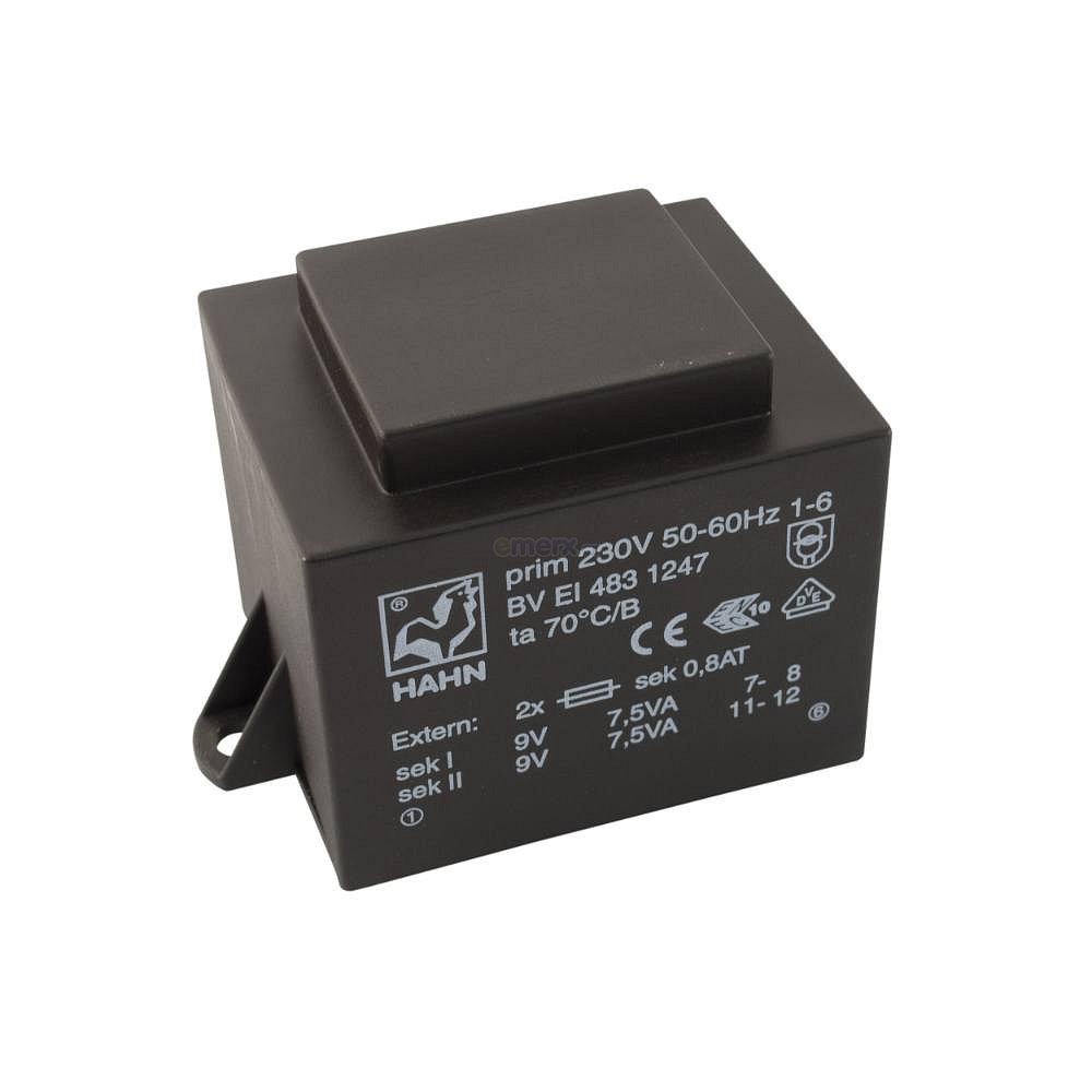 EI 48/25,5; 2x6V/1,25A; 15VA; 230V; 60x42,3x43,5mm; 2 úchyty