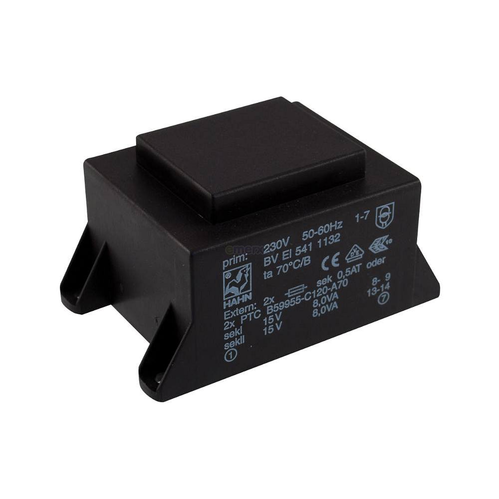 EI 54/18,8; 2x15V/0,534A; 16VA; 230V; 75,3x47,3x38,8mm; 4 úchyty