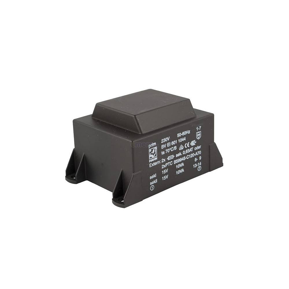 EI 60/21; 2x15V/0,667A; 20VA; 230V; 81,5x54,8x44,7mm; 4 úchyty