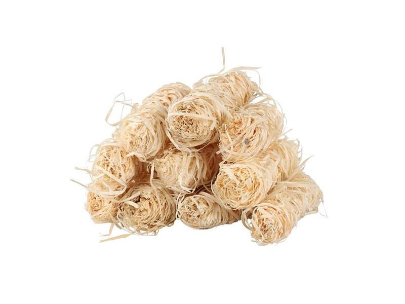 svitek z dřevité vlny o délce cca 6 - 8 cm, v průměru 2 - 3 cm