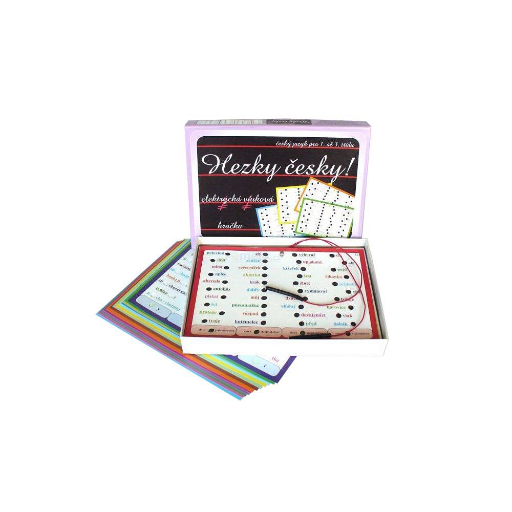 Hezky česky! Elektrická výuková hračka k osvojení základních pravidel českého pravopisu vyučovaných v 1. až 3. třídě základní školy. Na 16-ti listech je natištěno 640 pečlivě vybraných slov, do kterých děti doplňují chybějící písmenka. Ve spodní části každého listu jsou uvedeny možnosti odpovědí. Jednotlivé listy s úlohami jsou v souladu s učebnicemi pro 1. až 3. třídu základní školy. Hra procvičuje toto učivo: - určování počtu slabik ve slově - slova nadřazená, podřazená a souřadná - dvojhlásky au, ou a používání ů,ú - psaní y, ý, i, í po tvrdých a měkkých souhláskách - používání b/p, d/t, z/s, v/f, h/ch, ž/š - používání dě, tě, ně, mě, bě, pě, vě - psaní y, ý, i, í po obojetných souhláskách s ohledem na vyjmenovaná slova Číst dál ...