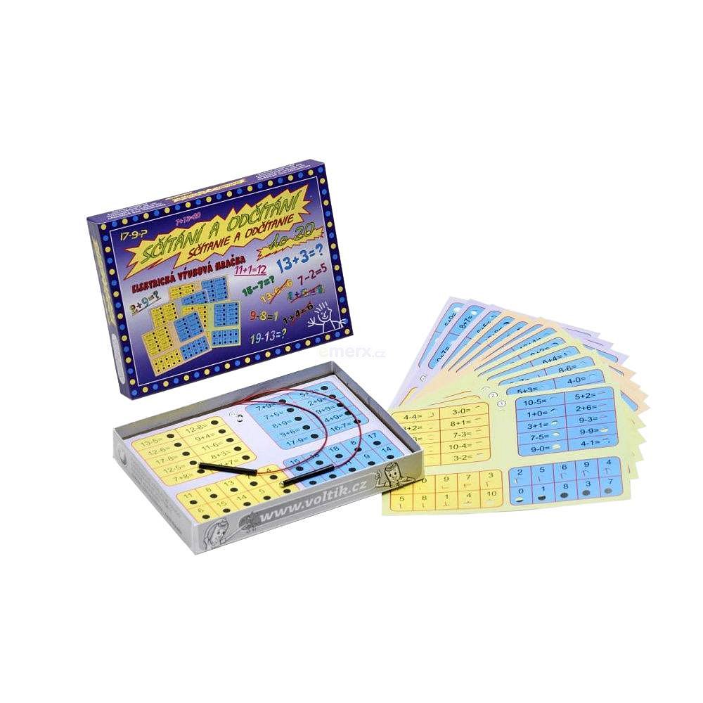 Elektrická výuková hračka určená dětem od 6 let. Obsahuje 320 příkladů na sčítání a odčítání do 20 na 16 výměnných listech.