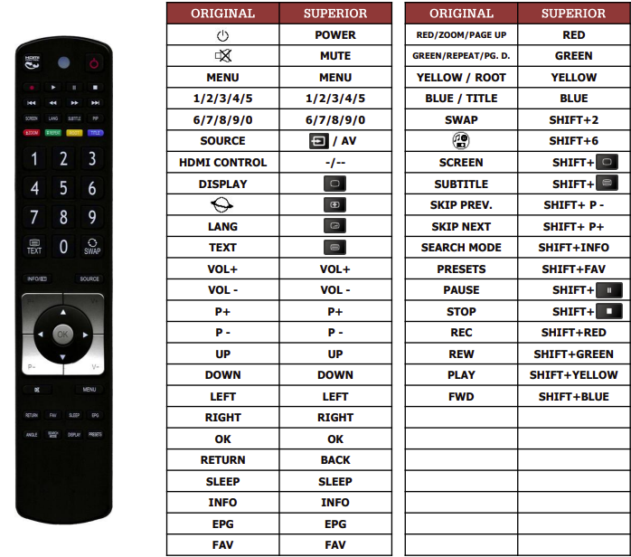 Náhradou za originální dálkový ovladač Finlux k tomuto přístoji je značkový ovladač EMERX PReDATOR (vpravo), který má jiný vzhled (barvu, rozložení tlačítek apod.), ale stejné funkce jako originální ovladač Finlux. Dálkový ovladač EMERX PReDATOR nabízíme jako levnější alternativu k originálnímu ovladači nebo proto, že se již tento originální ovladač nevyrábí. Námi zaslaný ovladač nemusíte nijak programovat. Bude nastaven přesně pro váš přístoj Finlux, se zachováním všech funkcí.