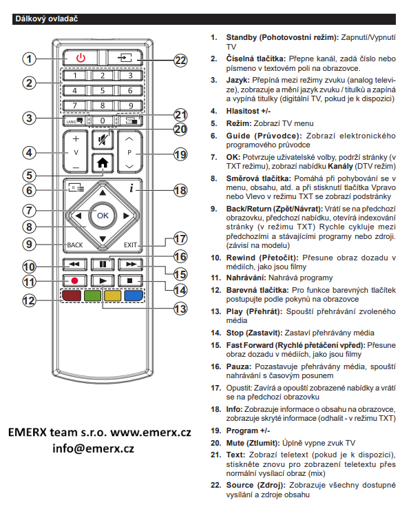Finlux  40FFG4661 originální dálkový ovladač Český návod pro dálkový ovladač Finlux RC39170 originální dálkový ovladač