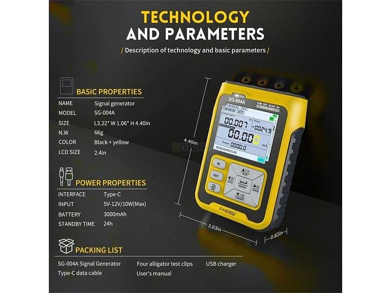 Generátor signálů FNIRSI SG-004A představuje výkonný a univerzální přístroj pro profesionální i hobby použití v oblasti elektroniky a elektrotechniky.