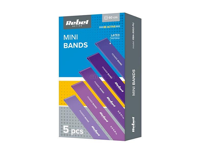 Guma posilovací REBEL Mini Band L 2,3-18,2kg 5ks mix purple
