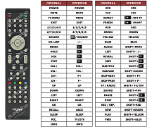Nabízíme jak originální dálkové ovladače Haier tak levnější náhradní ovladače. Náhradní dálkový ovladač Haier má stejné funkce jako originál. Jedniné v čem se může lišit je vzhled. Originály Haier jsou vyráběny přímo výrobcem, stejně jako přístroj. Proto jsou většinou dražší než náhrady (repliky). Náhradní ovladač pro Haier Vám udělá stejnou službu, jako originální ovladač, ale za nižší cenu.