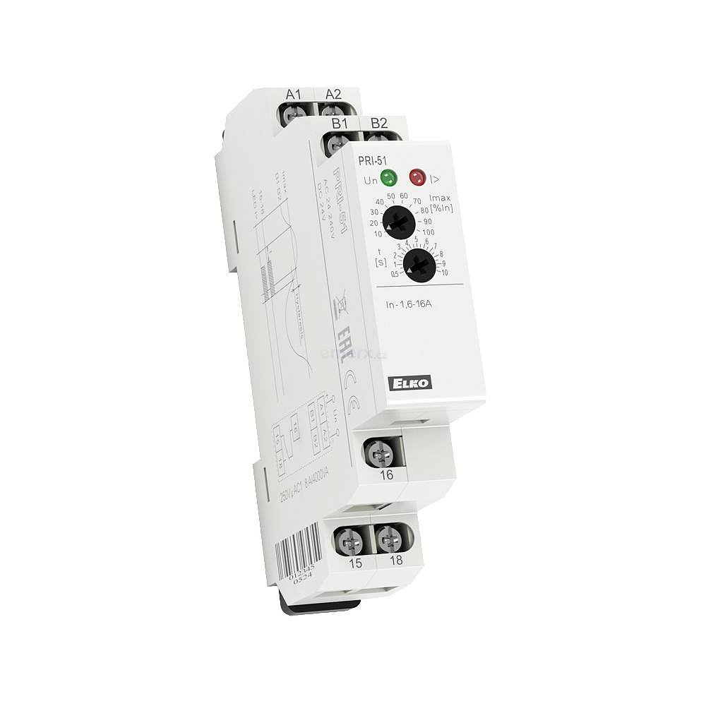 slouží například k hlídání topných tyčí ve výhybkách, topných kabelů, indikace průchodu proudu, hlídání odběru jednofázových motorů...plynulé nastavování vybavovacího proudu potenciometrem, rozsah AC 1.6-16 Anastavitelná prodleva 0.5 - 10 s (pro eliminaci krátkodobých špiček)možné použít i ke snímání proudu z proudového transformátoru - až 600 A !univerzální napájecí napětí AC 24 - 240 V a DC 24 Vnapájení je galvanicky odděleno od měřeného prouduvýstupní kontakt 1x přepínací 8 Ajednofázové provedení, 1-MODUL, upevnění na DIN lištu, náhrada za PRI-31