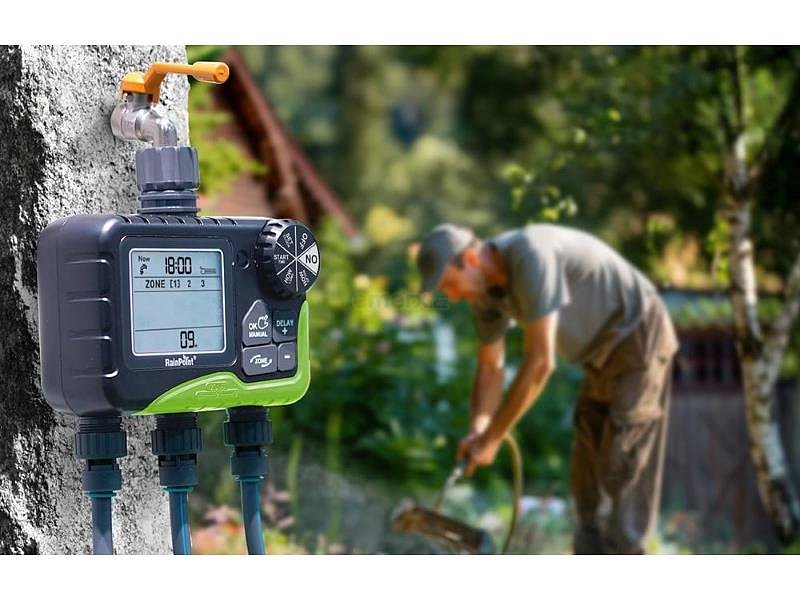 Třízónový regulátor RainPoint ITV305 umožňuje samostatně spravovat až tři nezávislé zavlažovací zóny. Každá z nich může mít nastavený samostatný časový plán - čas zahájení, délku a frekvenci zavlažování. Zařízení je vybaveno velkým LCD displejem (displej z tekutých krystalů) a funkčním voličem s přepínačem zón pro snadné každodenní ovládání. Vestavěný kovový filtr, silnější přívodní závit a stupeň krytí IP65 (International Protection Rating - stupeň ochrany proti prachu a proudu vody) zaručují odolnost proti povětrnostním vlivům. Další funkce, jako je ruční zavlažování, zpoždění cyklu v případě deště a ochrana proti vybití baterie, zvyšují spolehlivost zařízení.