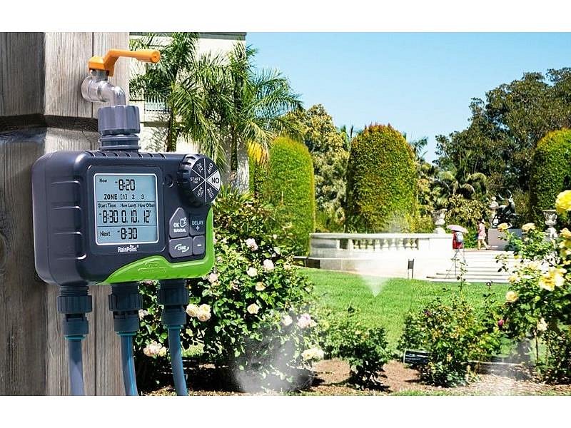 Každou ze tří zón lze naprogramovat samostatně. K dispozici jsou samostatná nastavení času spuštění, délky cyklu (od 1 minuty do 4 hodin) a frekvence (každých 1-12 hodin nebo 1-7 dní). To umožňuje přizpůsobit zavlažování různým oblastem, například trávníku, záhonům a zelenině.