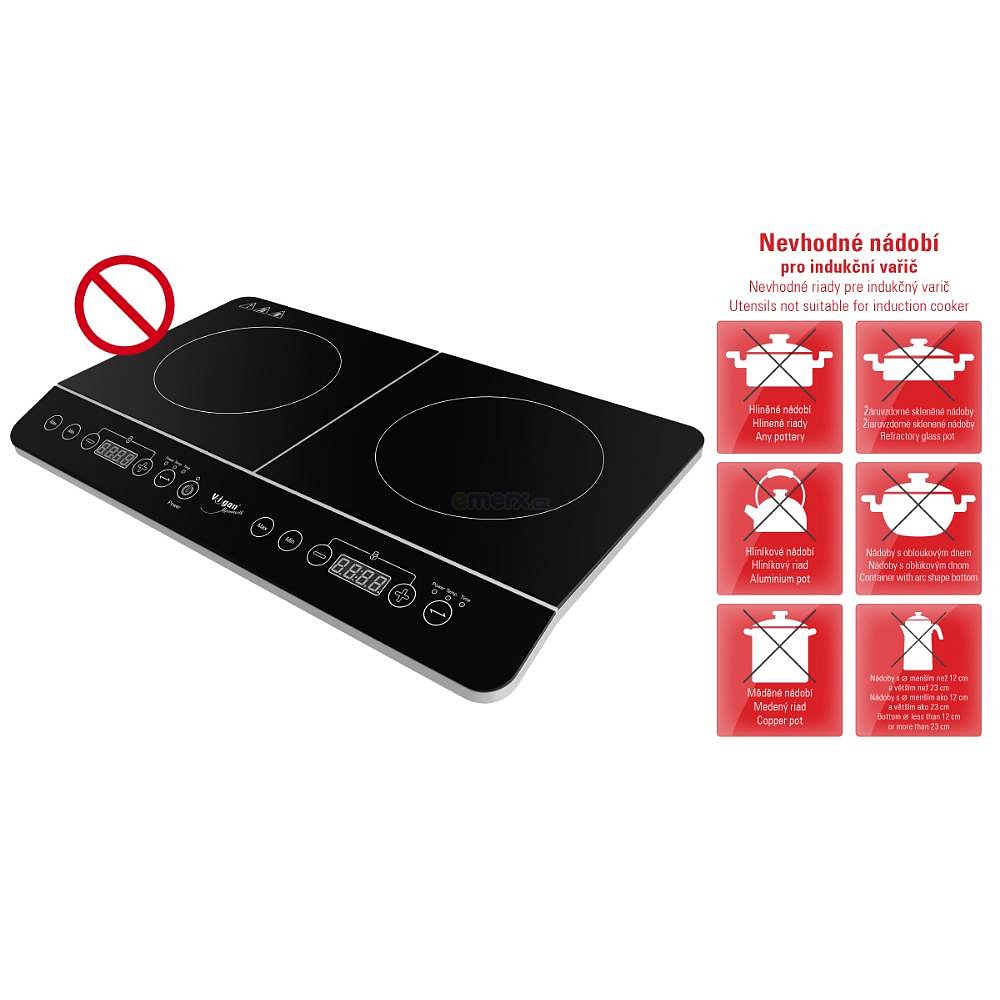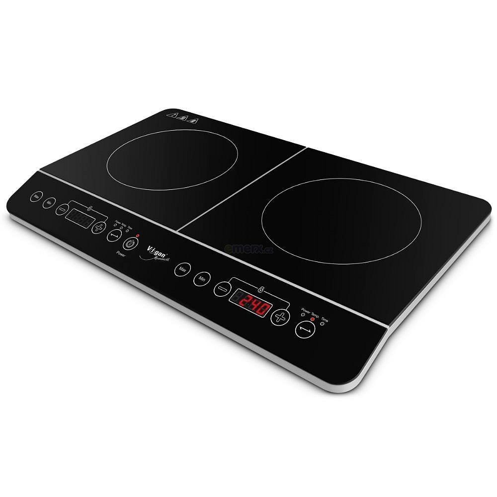 Indukční dvouplotýnkový elektrický vařič Vigan Mammoth IV2Z, s průměrem plotýnek 20 cm, sklokeramický povrch, velká úspora času a elektrické energie, minimální ztráty elektrické energie s vysokou účinností přenosu tepla až 90%. (IV2Z) 2 969 Kč