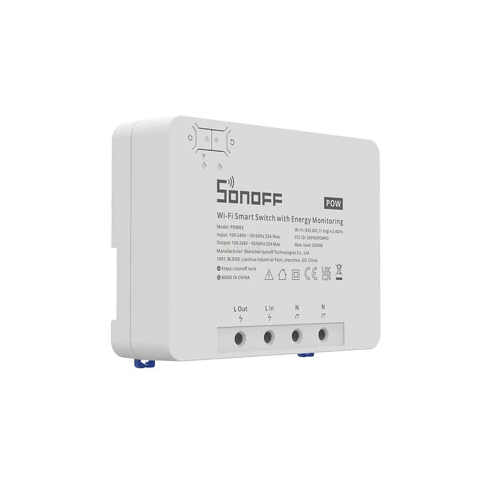 Aplikace eWeLink a služby spojené s provozem vypínačů jsou poskytovány zdarma.Napájení je řešeno přímo z 230 V a výstupem (rovněž 230 V) lze ovládat spotřebiče až do zátěže 25 A na okruh.POWR3 nabízí funkci měření spotřeby elektrické energie (POW)Specifikace: 100-240V AC Max.