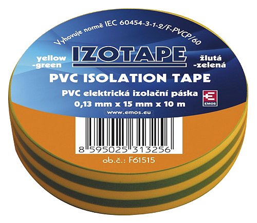 Páska izolační PVC 15mm/10m zelenožlutá EMOS 1ks 10 Kč