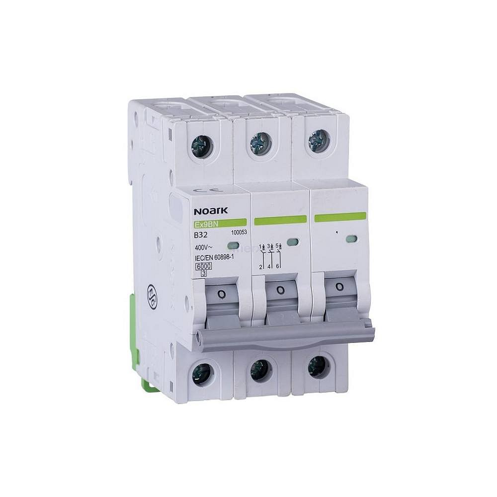 Jistič 3-pólový, 32A, 240/415V AC, vypínací schopnost 6kA, vypínací charakteristika BPARAMETRY PRODUKTUVypínací charakteristika BPočet pólů (celkem) 3Počet jištěných pólů 3Dimenzovaný proud 32 ADimenzované napětí 400 VZkratová schopnost při 230V Icn EN 60898 6 kAZkratová schopnost při 400V Icn EN 60898 6 kAVypínací schopnost 6 kADruh napětí ACTřída omezení energie 3Frekvence 50 HzKategorie přepětí 3Šířka v počtech modulů 3Montážní hloubka 74 mmMožnost vybavení doplňkovými zařízeními AnoKrytí (IP) IP20Instalační jističe Ex9BN jsou vhodné pro domovní i průmyslové aplikace.