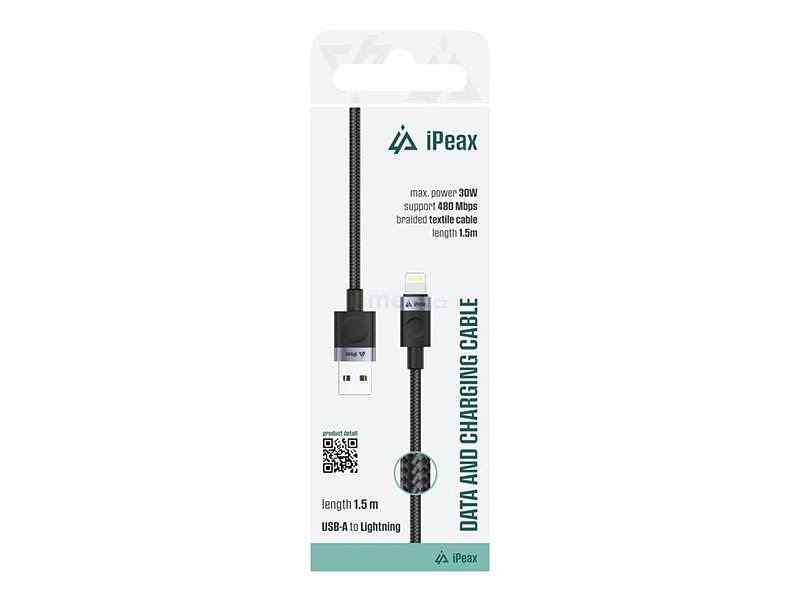 iPEAX kabel o délce 1,5 metru je navržen speciálně pro uživatele zařízení Apple s Lightning konektorem. Umožňuje pohodlné nabíjení i přenos dat skrze standard USB 2.0 a výkon až 30W. Hodí se tak pro iPhony, iPady i AirPody.