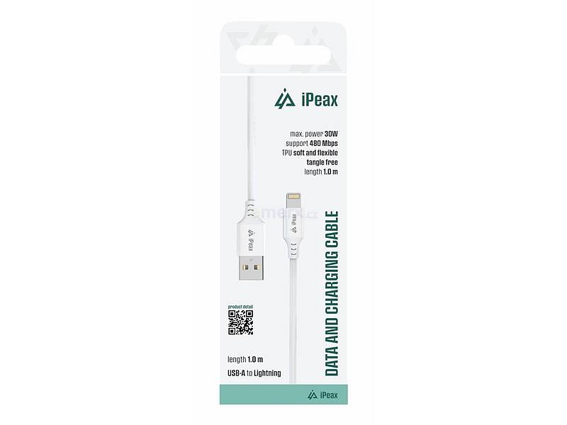 Cenově dostupný kabel iPEAX s délkou 1 m nabízí spolehlivé nabíjení i datovou synchronizaci všech zařízení Apple s Lightning konektorem. Díky USB 2.0 standardu a proudovému výkonu až 30W bez problémů obslouží iPhony, iPady nebo AirPody.