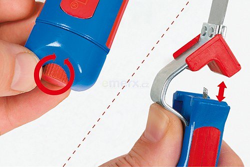 Umožňuje rozříznout všechny běžné kulaté kabely mezi nimi 4 až 28 mm. Hloubku řezu čepele lze regulovat pomocí nastavitelné šroubky na konci rukojeti. to zabrání poškození vnitřního vodiče. Čepel je přispůsobená automatickému přechodu z kruhového do podélné řezání. Nůž má ergonomicky tvarovaný, protiskluzový rukojeť. Je možné na poptání zakoupit náhradní čepel. Testováno TÜV NORD, patentované nůž s celkovou délkou 185mm. Číst dál ...