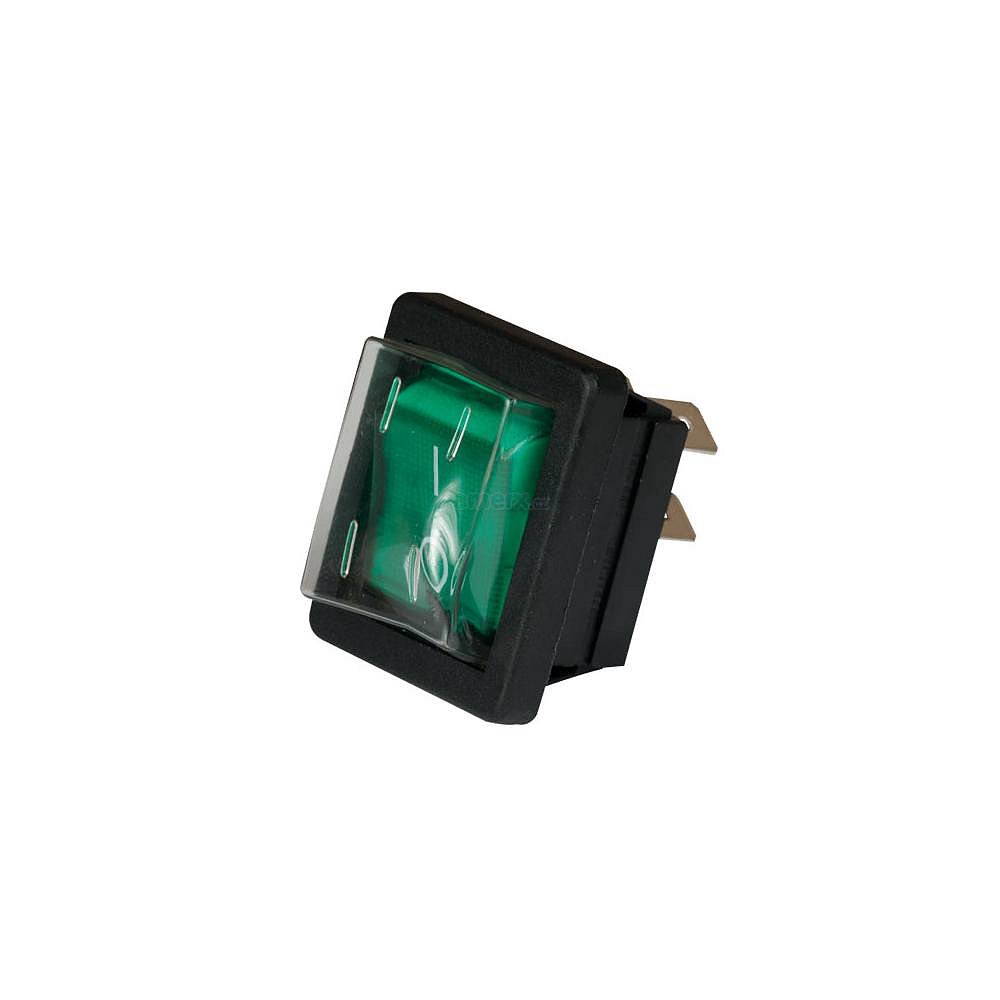 Kolébkový spínač zelený, 2 póly, ON-OFF, 16A/250V, kryt IP65