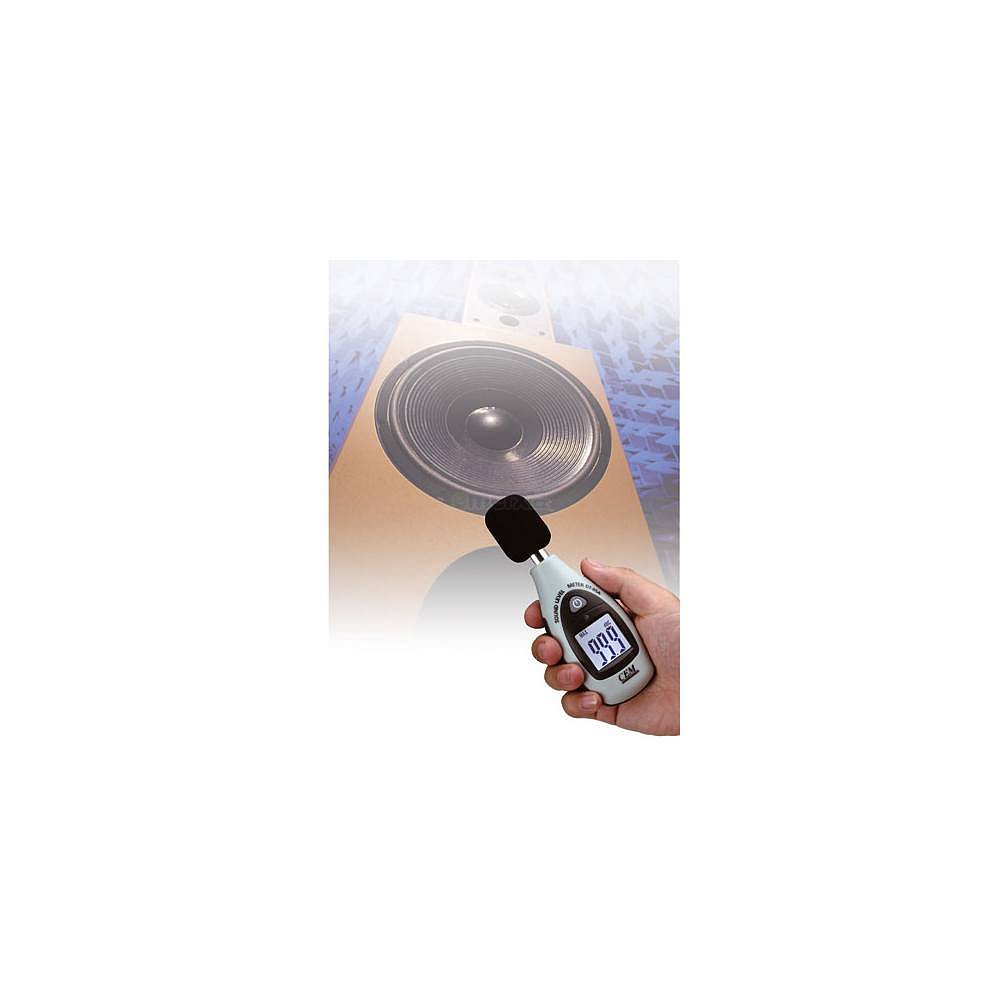 Kompaktní měřič hluku pro rychle měření,měřicí rozsah 40..130dB, přesnost +/-3dB, frekvenční pásmo A, Max/Min Hold funkce.Napájení: 9V, 6F22 baterie