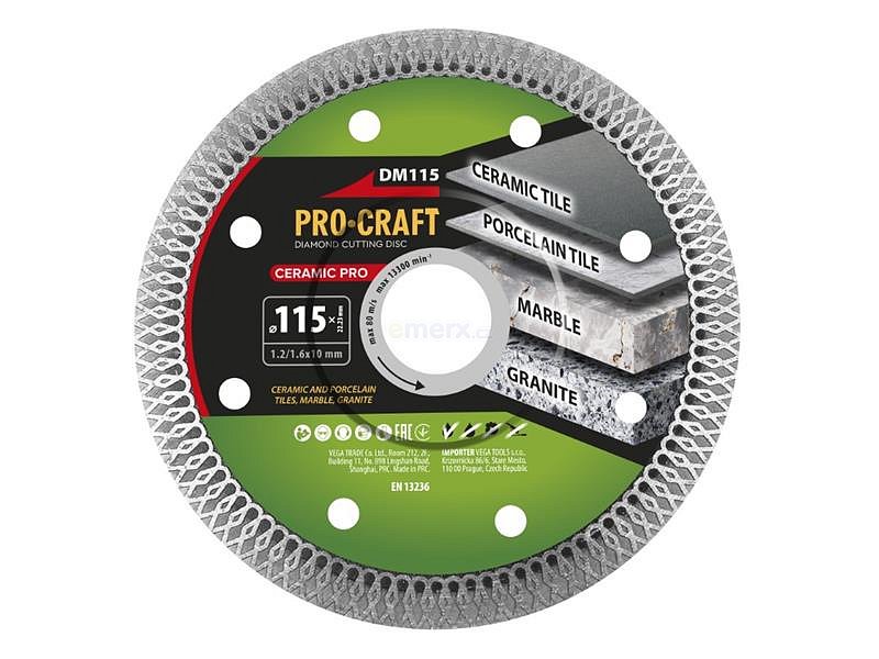 Kotouč řezný diamantový 115mm PROCRAFT DM115 Ceramic PRO 196 Kč