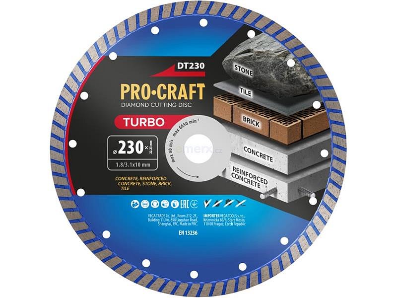 Diamantový rezný kotúč 230 mm PROCRAFT DT230 Turbo 11.9 €