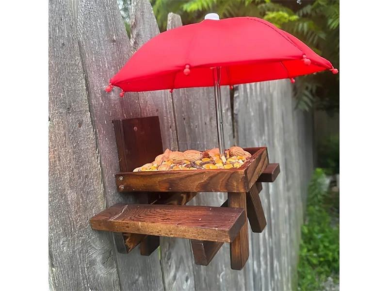 Přineste do své zahrady nebo na balkon radost s tímto unikátním krmítkem ve tvaru piknikového stolu! Nejenže přiláká opeřené návštěvníky a další malé tvory, ale také vám nabídne jedinečnou podívanou na jejich rozvernou hostinu. Praktický deštník chrání pamlsky před deštěm i přímým sluncem.