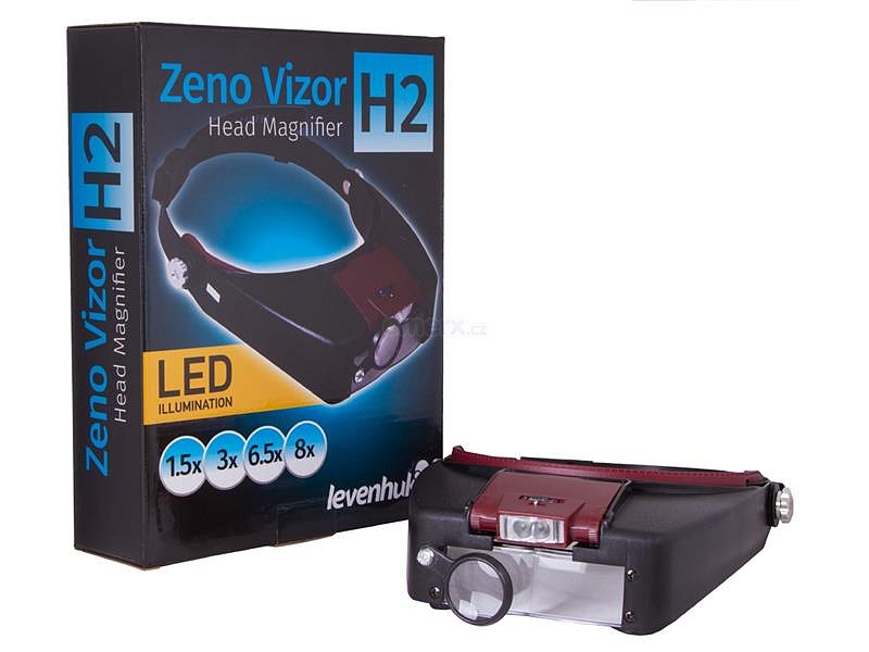 Náhlavní lupa Levenhuk Zeno Vizor H2 osvobodí vaše ruce a pomůže při jakékoli práci s drobnými předměty. Lupa je vybavena LED osvětlením a přídavnými čočkami o různých hodnotách zvětšení. K hlavě se bezpečně upevní pomocí praktické pružné čelenky. Zvětšení se pohybuje od 1,5x do 8x.