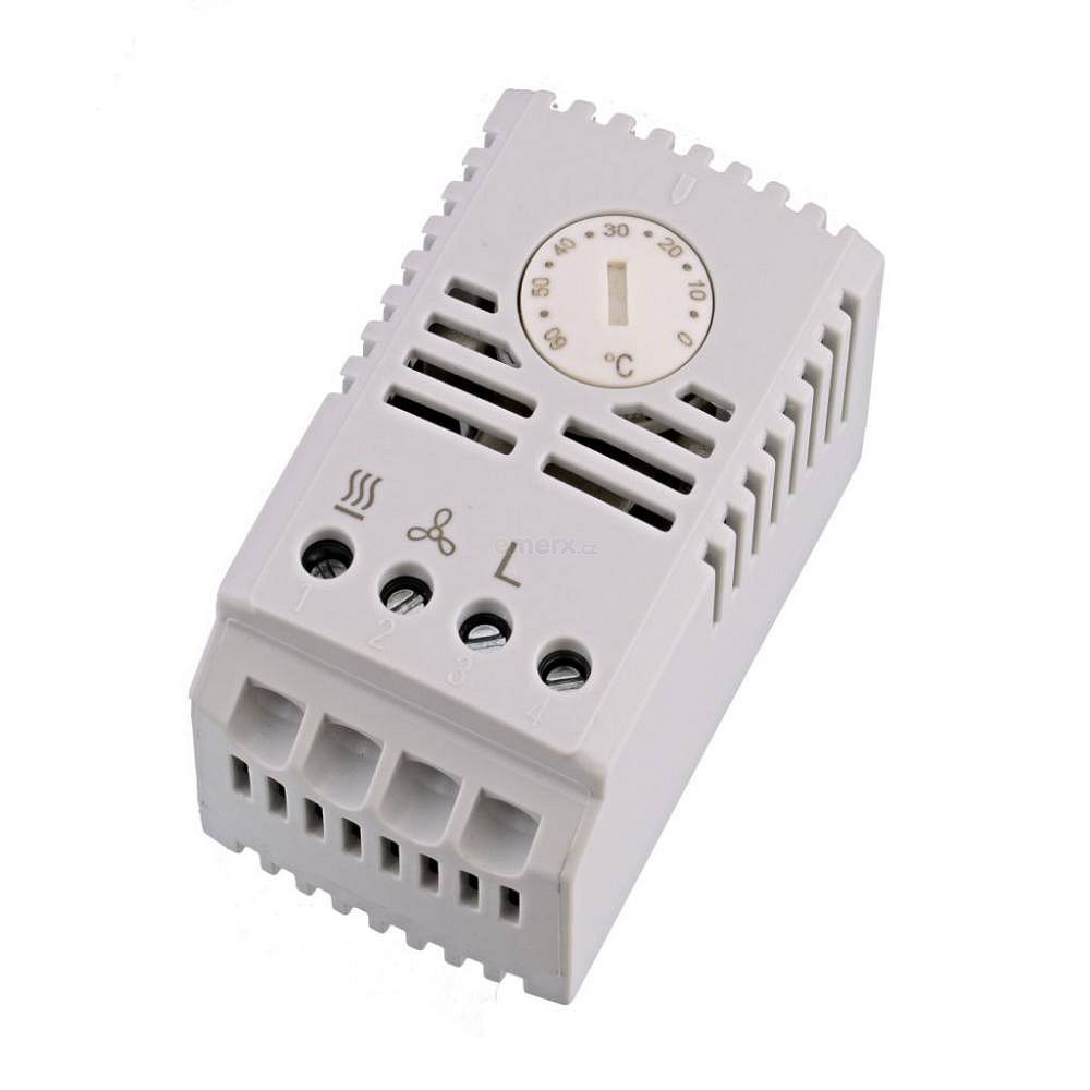 Mechanický bimetalový termostat (NO+NC) pro spínání topných těles nebo ventilátorů na DIN lištu.