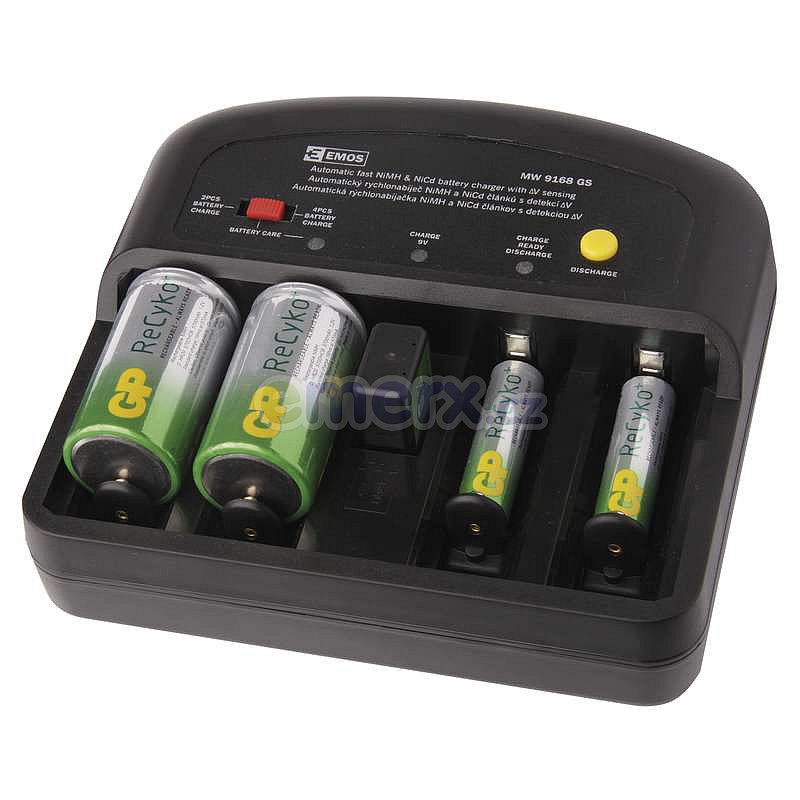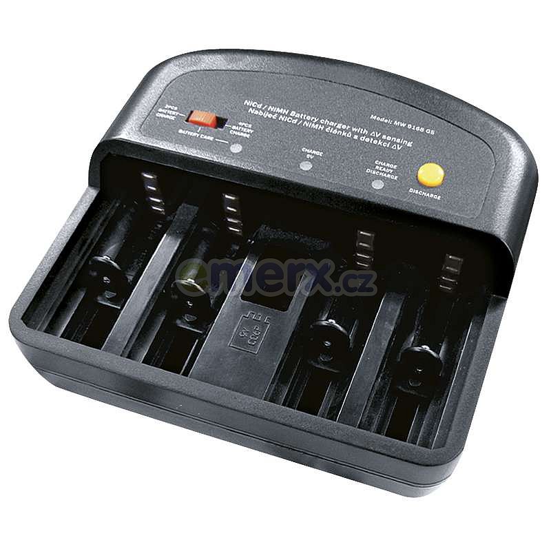 nabíjí 2 nebo 4 baterie NiMH / NiCd o velikosti AAA, AA, C nebo D a nebo 1 NiMH / NiCd o velikosti 9V