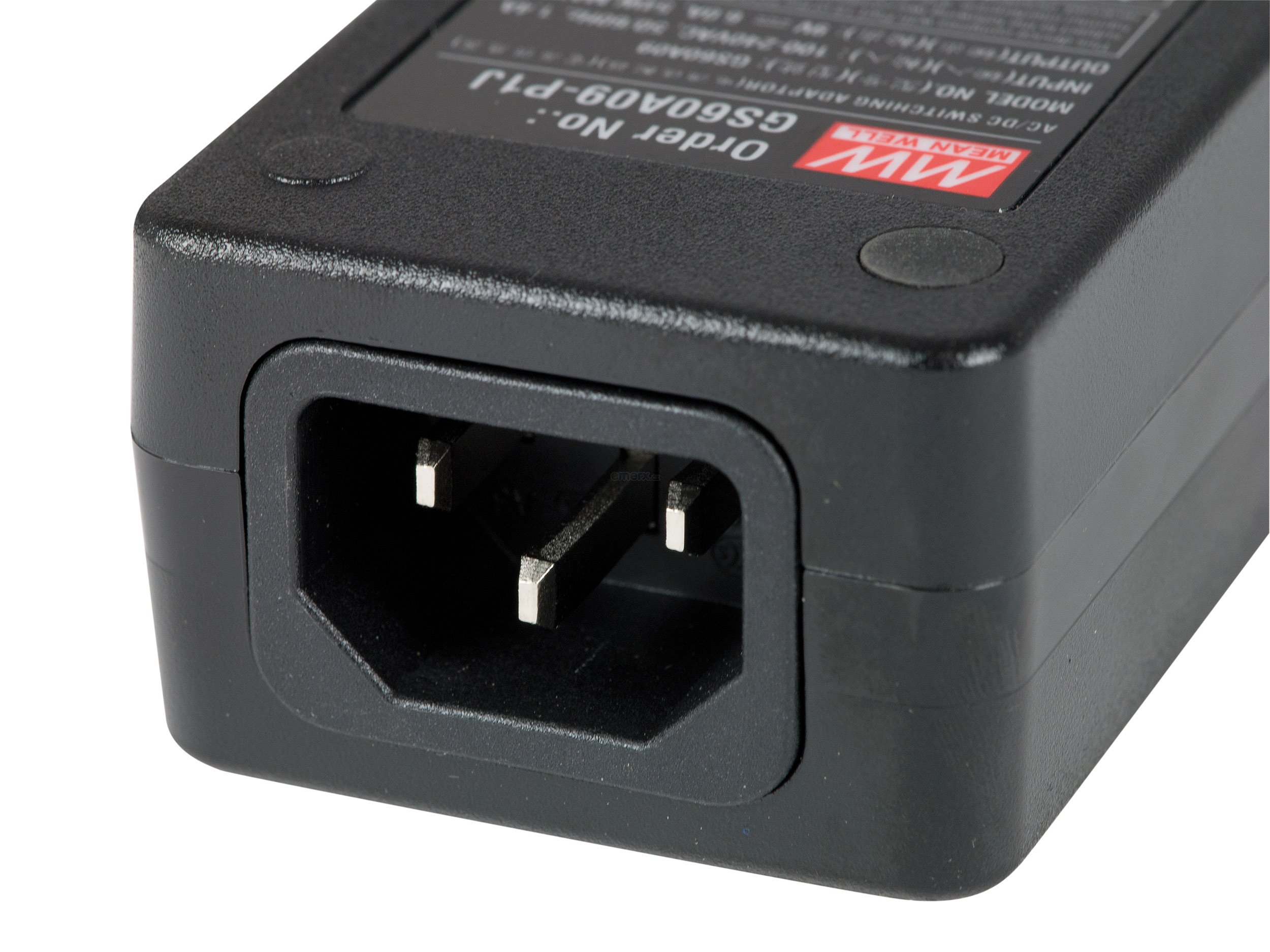 Spínaný napájecí adaptér síťový, Stabilizovaný Vstupní napětí: 90..264V AC, 127..370V DC Výstupní napětí: 9V Výstupní proud: 6A Výstupní výkon: 54W Výstupní konektor: Souosý 5,5/2,1 mm Rozměry: 125x50x31.5mm Výrobce: Mean Well