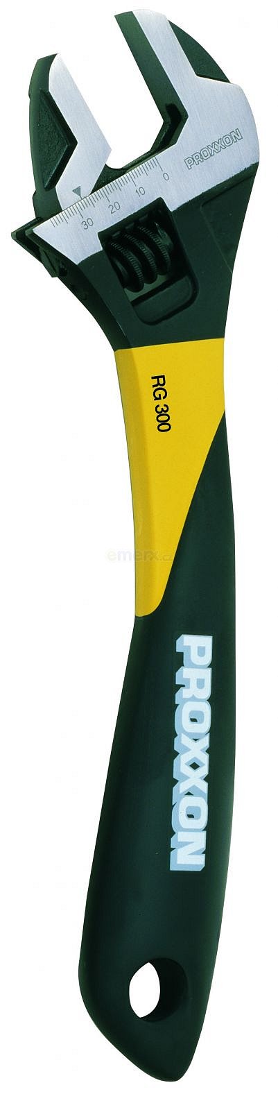 Nastavitelný klíč RG300 je kovaný z 31CrV což zaručuje velkou tvrdost. Úzká hlava klíče s leštěnými čelistmi, které lze rozevřít do max. 34,0mm. Extra dlouhé provedení délky 325mm s příjemnou rukojetí z termoplastické hmoty odolné olejům a kyselinám s praktickým otvorem pro zavěšení. Přesné vedení pohyblivé čelisti s jednoduchým přenastavením pomocí stavitelného rýhovaného šneku. Dobře čitelná stupnice v „mm“ pro nastavení klíče a příp. i měření obrobků jako šuplera. Nastavitelný klíč RG200 je díky ergonomické rukojeti příjemný do ruky i pro dlouhodobou práci a plně profesionální využití. Klíč splňuje požadavky předpisů DIN 3117/ ISO 6787.