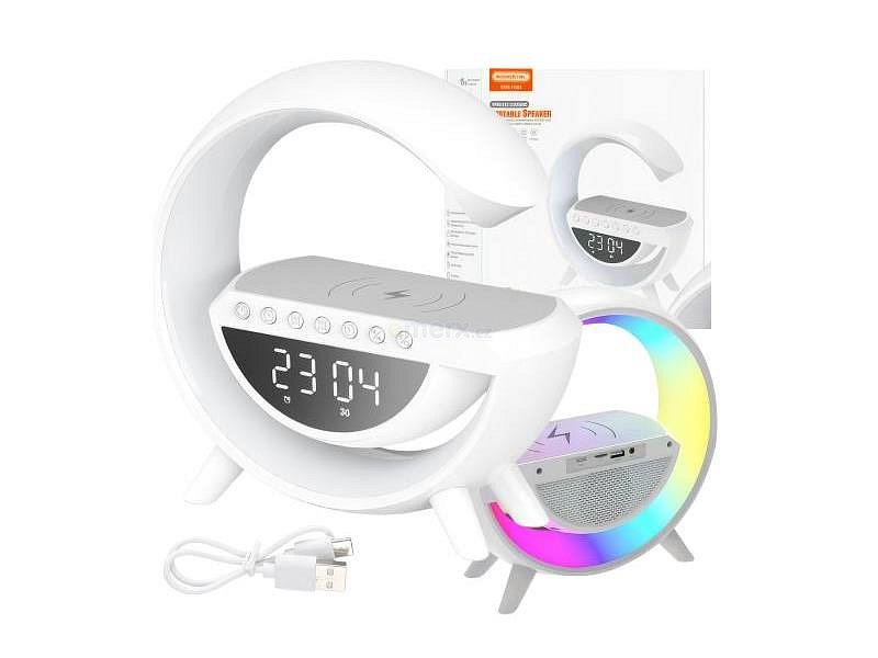 Funkce: LED lampa, hodiny, budík, indukční nabíječka Qi, Bluetooth reproduktor