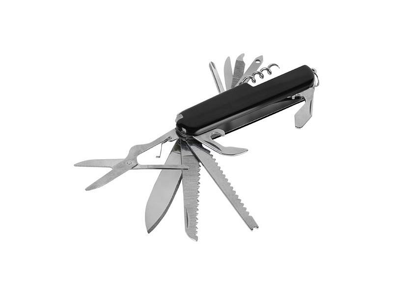 Sada více než tuctu praktických nástrojů – od čepele, nůžek a šroubováků až po pilu, otvíráky na konzervy, pilník a párátko – dělá z tohoto multifunkčního nástroje nepostradatelného společníka. Jeho kompaktní velikost ukrývá kompletní arzenál funkcí, připravených k okamžitému použití.