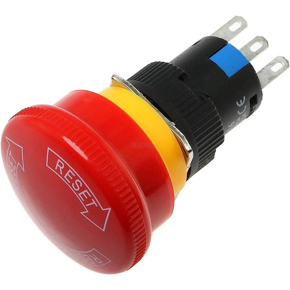 Odolný spínač typu antivandal (stop tlačítko) 250 V, 5 A, s aretací, bez podsvětlení, červená barva.