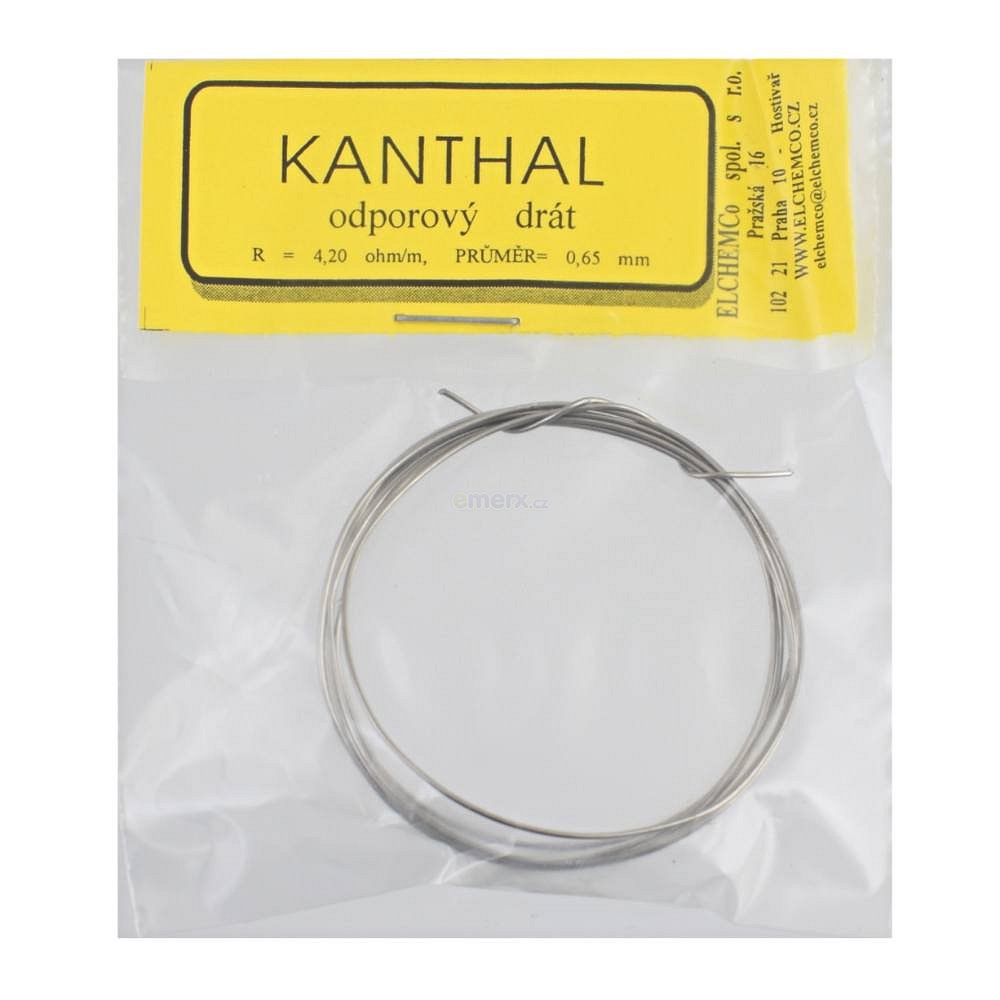 Odporový drát - kanthal; R=4,20 ohm/m; tolerance +/- 0,1Ohm/m; d=0,65 mm; délka 3m