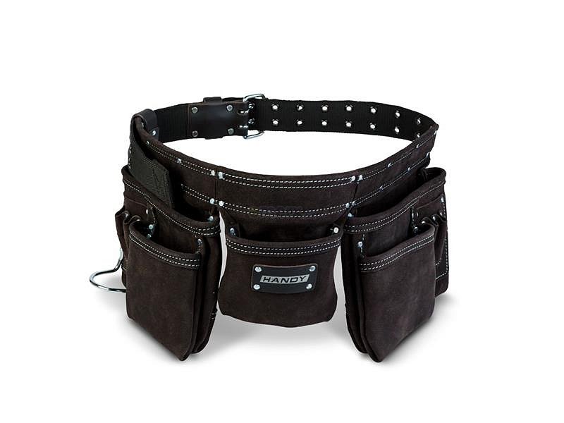 Extra kvalitní pracovní pásek Handy z pravého hovězího kůže, který je vynikajícím společníkem pro každého řemeslníka: truhláře, instalatéra, elektrikáře či domácí kutily. Masivní švy a pevné nýty zaručují dlouhou životnost a dobře rozložené kapsy a držáky udrží všechny potřebné nástroje po ruce.