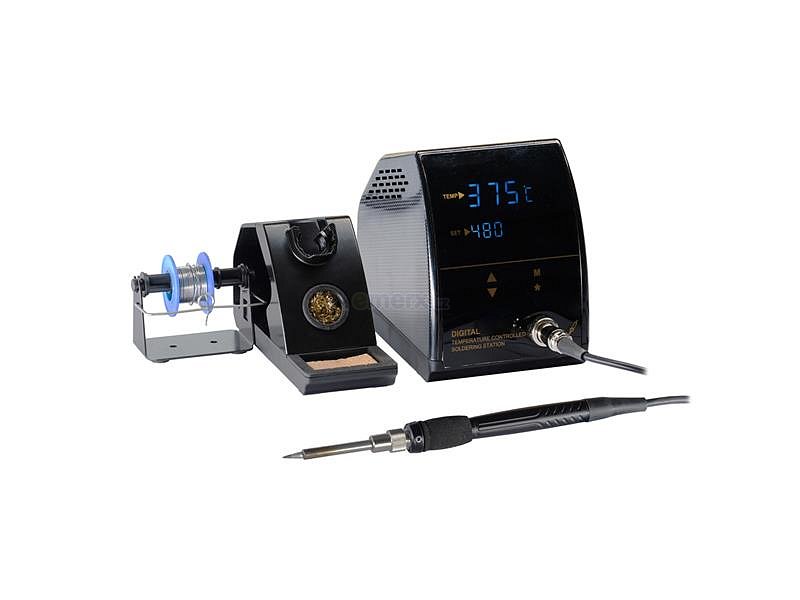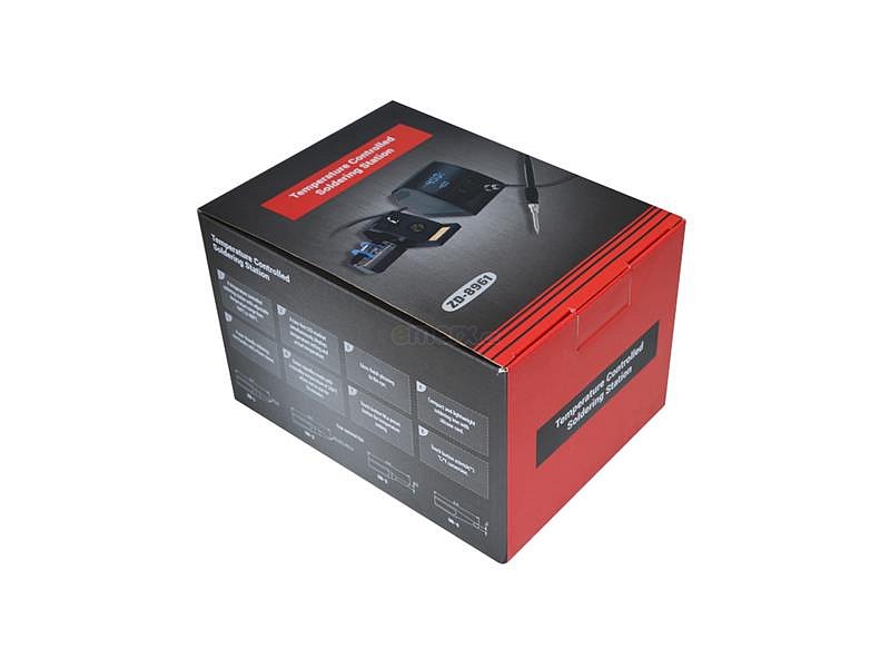 Pájecí stanice (mikropájka) ZD-8961 navržena pro bezolovnaté pájení s nastavitelnou teplotou hrotu v rozmezí 160 až 480°C je vhodná pro jemnou práci v elektronice . Přístroj je určen pro použití v oblasti elektronického výzkumu, škol a výroby, zejména při opravách a pájení elektronických přístrojů a telekomunikačních zařízení. Na LED displeji stanice je digitálně zobrazována nastavená a aktuální pracovní teplota pájecího hrotu, kterou lze přesně nastavit . Díky unikátnímu teplotnímu čidlu v blízkosti hrotu, kolísá teplota hrotu minimálně. Galvanické oddělení pájecí rukojeti od sítě transformátorem, napájení topného tělíska malým napětím 24V AC. Keramické topné tělísko s dlouhou životností. Výměnné hroty z řady TIP N8-1 až TIP N8-4, jsou železné a poměděné proti opotřebení. Na čištění hrotu je dodávána koule z měděného drátu a čisticí houbička.