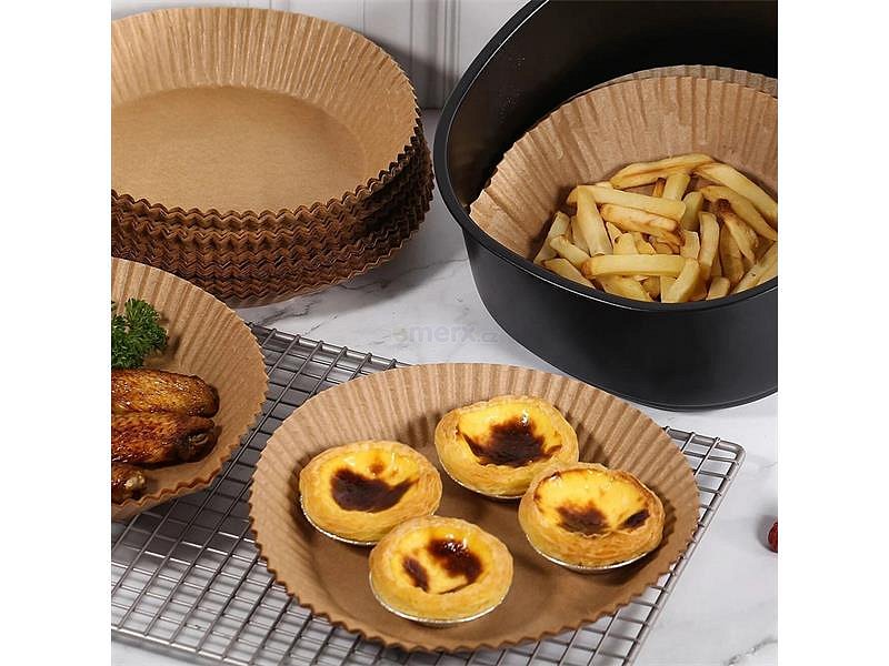 Praktické řešení pečení, použití speciálního pečicího papíru pro Airfryer, pomocí kterého je možné minimalizovat přilepení a připálení jídla k pečícímu koši. Papír chrání jídlo před přilepením, čímž činí připravované jídlo chutnější a minimalizuje ztráty jídla. Koš se snáze čistí, není třeba ho drhnout, čímž se prodlužuje jeho životnost.