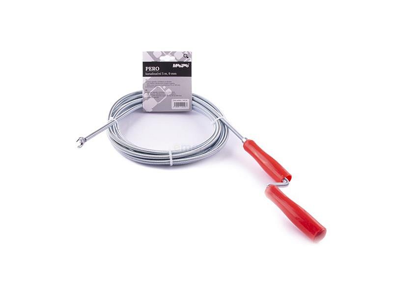 Čistící spirála s držákem a rukojetí pro čištění odtokových trubek z plastu, litiny nebo kamene s průměrem 50 až 100 mm