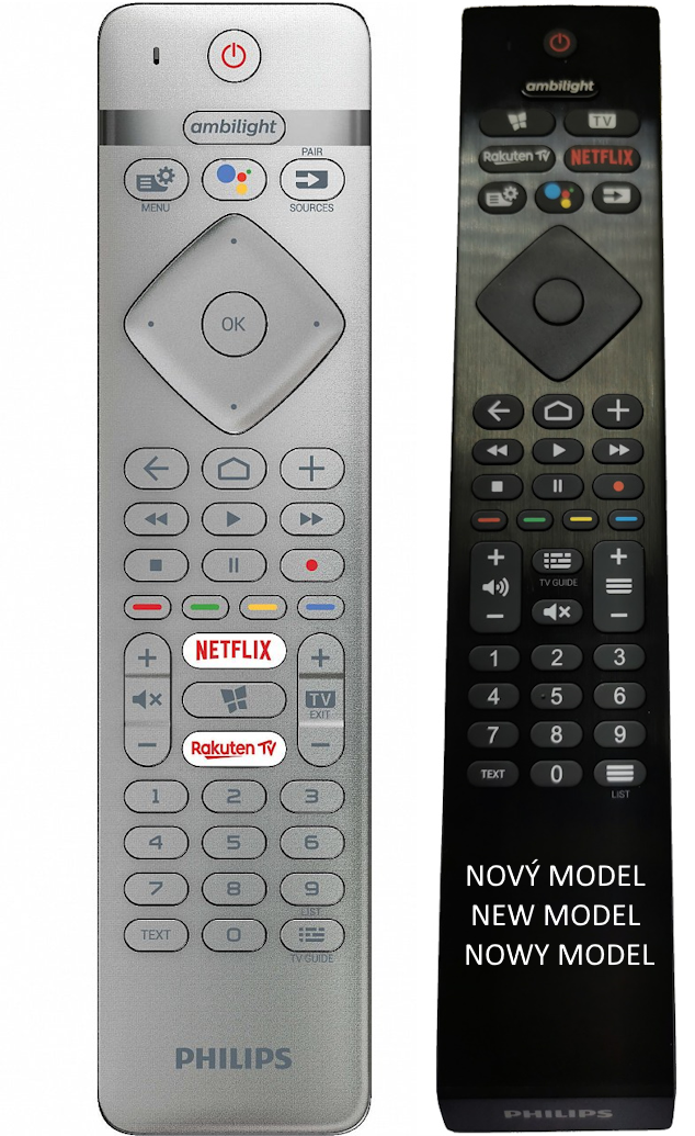 PHILIPS originální dálkový ovladač. Tento ovladač byl nahrazen novým černým modelem na obrázku. Má všechny funkce včetně hlasového ovládání. Například pro modely 43PUS7354, 75PUS7354, , 43PUS7304, 55PUS7354, 50PUS7504, 65PUS7351, 65PUS7304, 70PUS7304