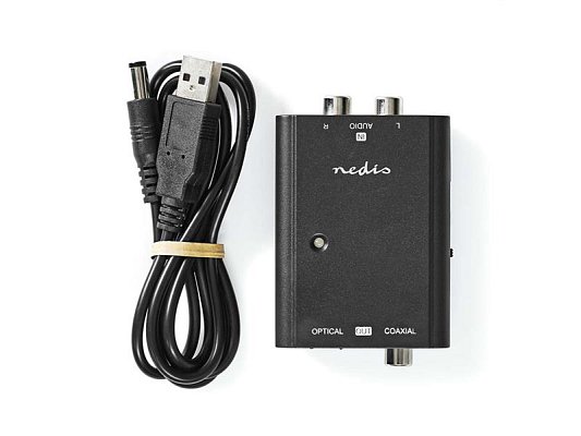 Tento Nedis® digitální audio převodník převádí analogový stereofonní zvukový signál na digitální Toslink nebo RCA zvukový signál na vstupním portu přijímače nebo zesilovače. Dodává se s nabíjecím kabelem DC-USB (adaptér není součástí balení) pro snadné napájení tohoto digitální audio převodníku.