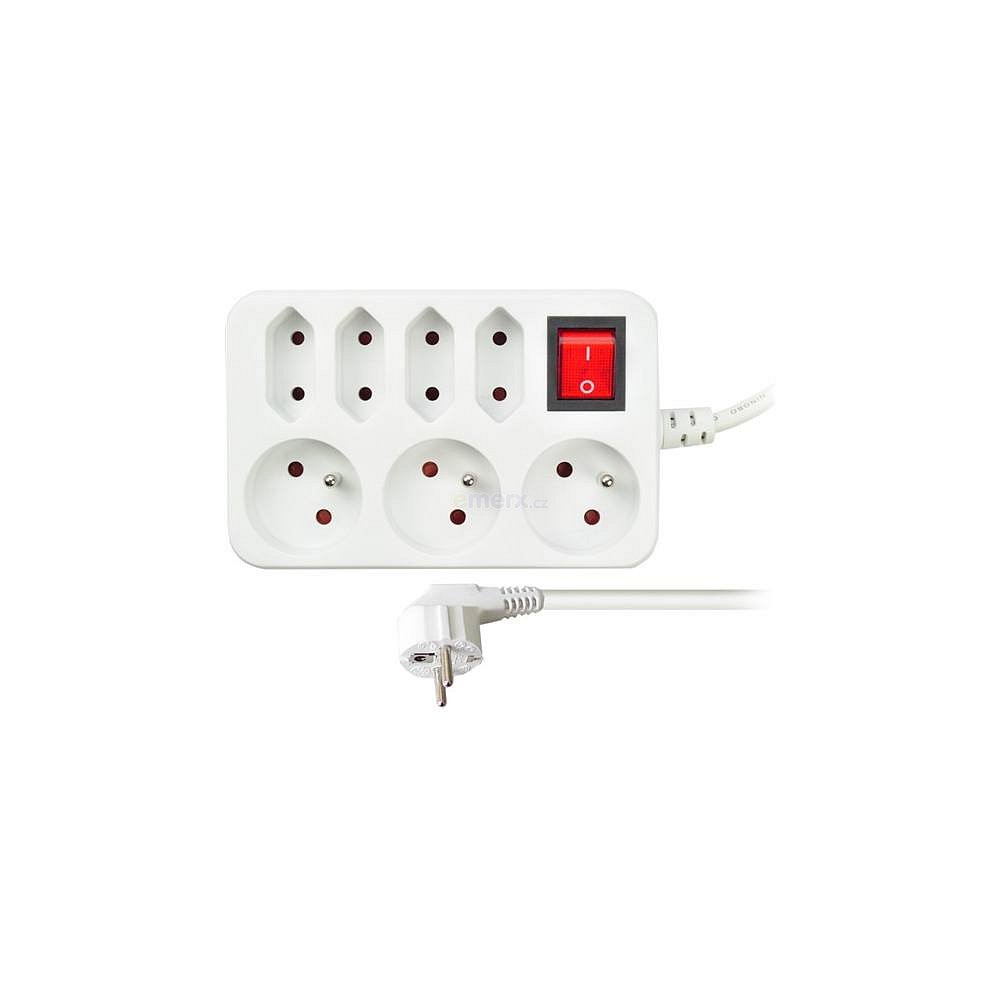 Prodlužovací přívodPočet zásuvek: 73x 10A + 4x 2.5APrůřez vodičů: 3 x 1mm2Typ kabelu: H05VV-F3Lomená vidliceBarva: bíláDélka: 2mMax.
