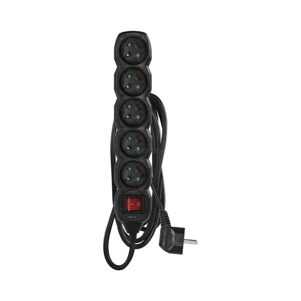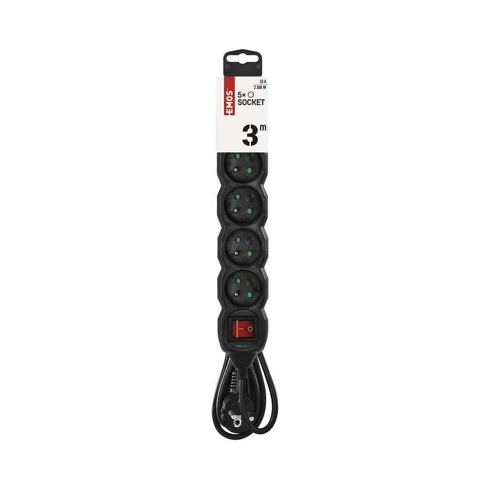 Prodlužovací kabel 230V, 3m, 5x zásuvka, vypínač, černý